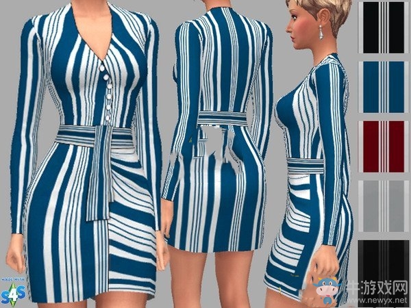 《模拟人生4》女性条纹时尚连衣裙MOD。这件条纹连衣裙的设计看着还带有点复古风,服装颜色一般都是由两种颜色组成,具体效果可以看图。这条裙子有五种不同的颜色给玩家选择。