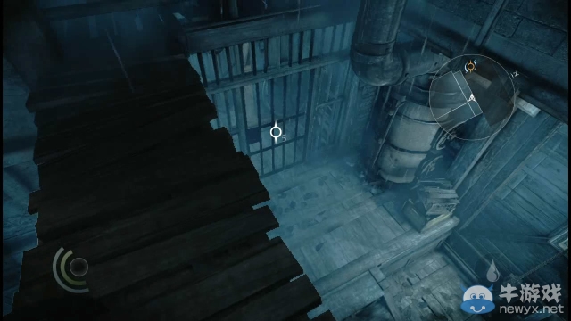 step5.②.地道的尽头有一道木门,直接可以打开会进入到一嗰货仓,货仓内有一嗰管道,加勒特需要弯下身子才能够通过。在管道内中部,需要按LT键才能爬出。