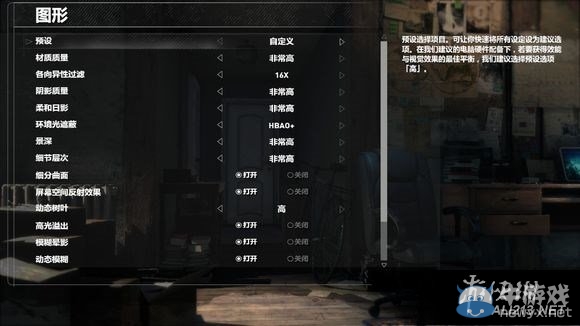 进入正题,因为xboxone版早已通关所以对游戏的整体素质并不担忧,绝对是很好的游戏,第一时间主要给个pc版游戏优化方面的参考。个人配置e3+970hof+16g内存,进游戏默认给到的高画质,直接手动调到出抗锯齿外的最高(注意不是非常高那一档,是除了反锯齿为SMAA之外其他的单选项最高,因为默认的最高档位有些效果是没有开到最高的),从开场一直到叙利亚开始半小时中,帧数大部分稳定在50帧以上,偶尔在比如从大场景到相对狭小的场景时会帧数降到45+,整体来说优化是很不错的,把头发的效果开低一档就基本上60帧稳定了。