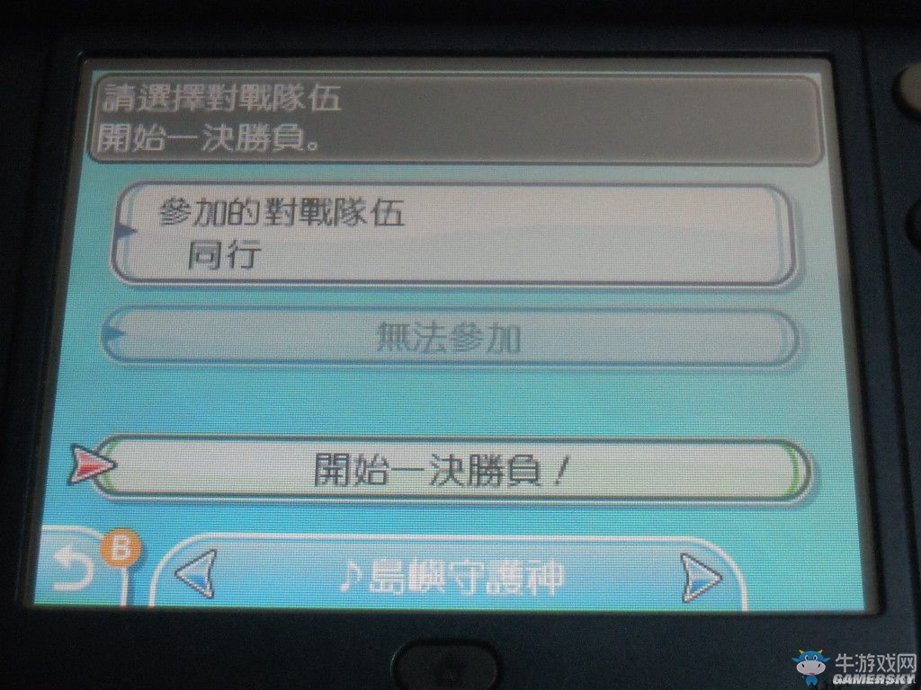选择任一规则后,进入此画面选择对战用队伍,正下方选项选择对战音乐。