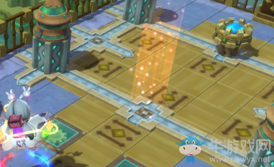 2.消灭完第二个平台上的怪物之后,我们就可以继续移动动力源前往下个平台.(注意移动躲避小怪物们的攻击哦)把动力源移动到下图中的位置就可以启动机关通往下个平台.
