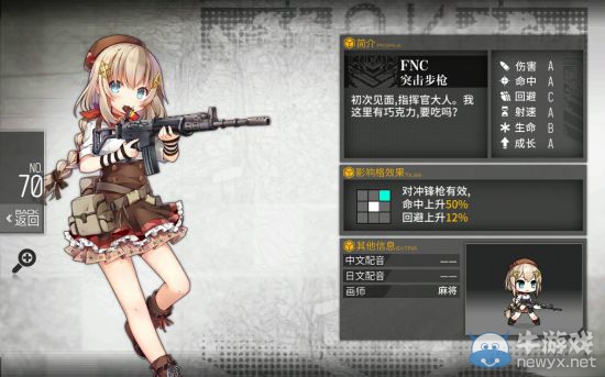 《少女前线》FNFNC技能介绍。在游戏中,突击步枪FNFNC的属性怎样?它的建造公式是什么?FNFNC有什么技能呢?接下来牛游戏网给大家介绍的是少女前线突击步枪FNFNC的属性攻略。感兴趣的玩家们千万不要错过了!快来看看吧。