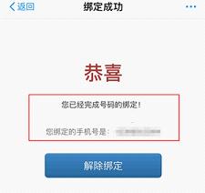 三、最后收到恭喜您完成号码绑定的提示框,如图所示。